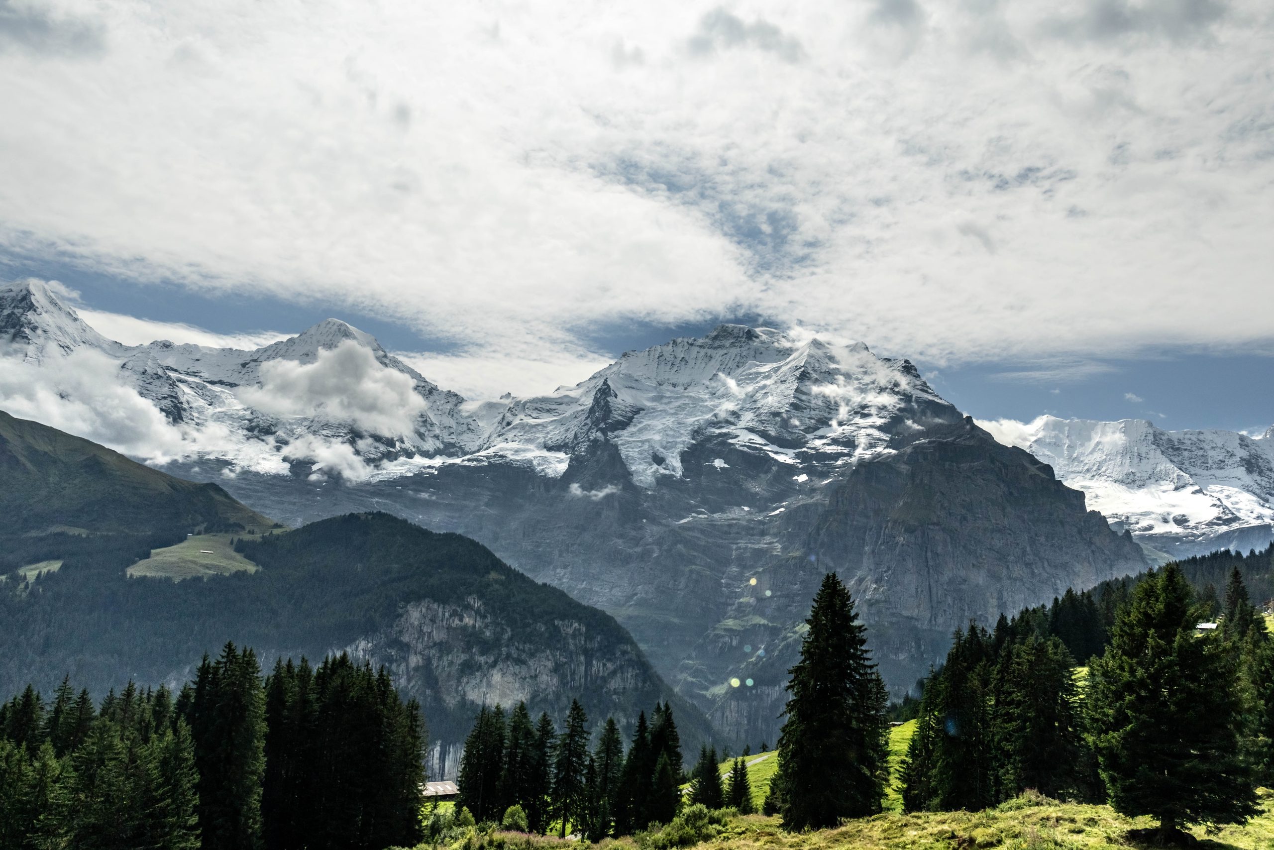 Upon arrival in Lauterbrunnen, known for its dramatic cliffs and 72 waterfalls, we immediately felt immersed in a postcard-perfect landscape. From Lauterbrunnen, we took the cogwheel train up to Mürren, a car-free village perched high above the valley. The train ride itself was an experience, offering breathtaking panoramic views of the Eiger, Mönch, and Jungfrau peaks.