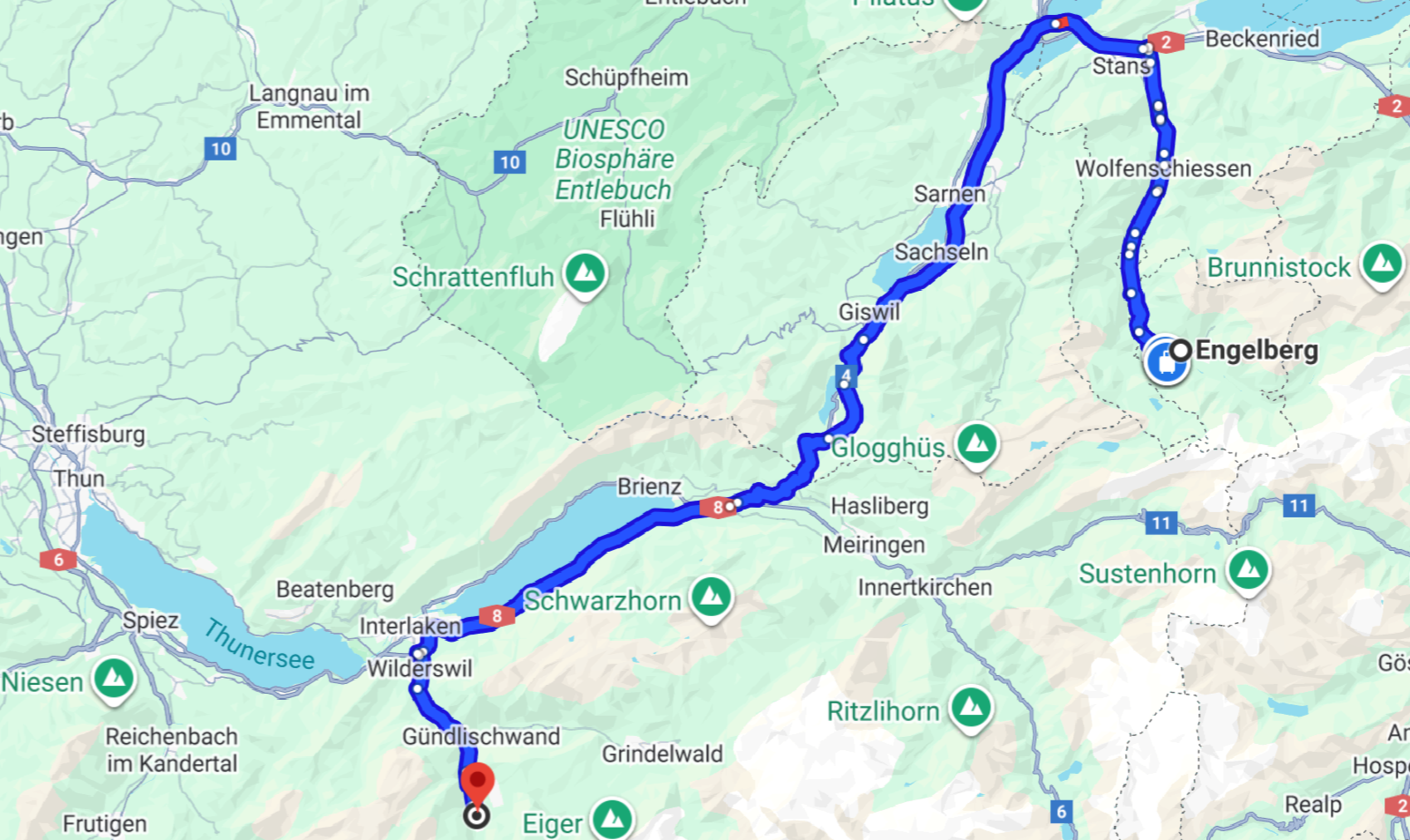 Our road trip from Engelberg to Lauterbrunnen was a scenic journey through the heart of Switzerland. The drive offered stunning views of rolling hills, charming villages, and distant mountain peaks.